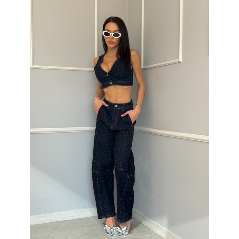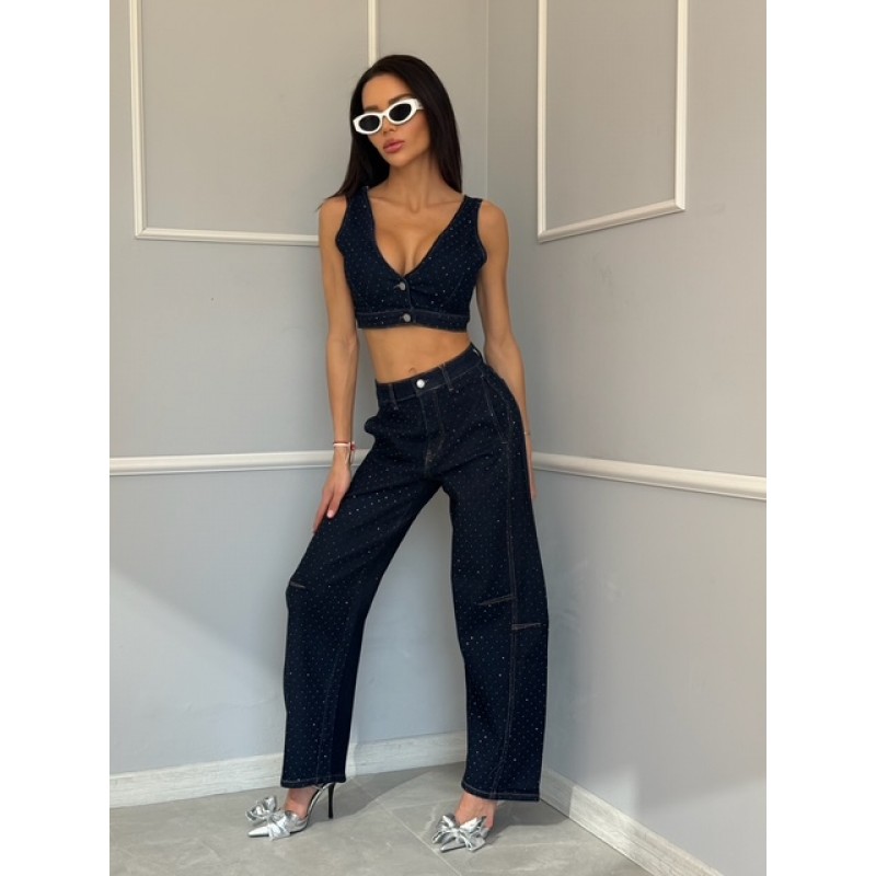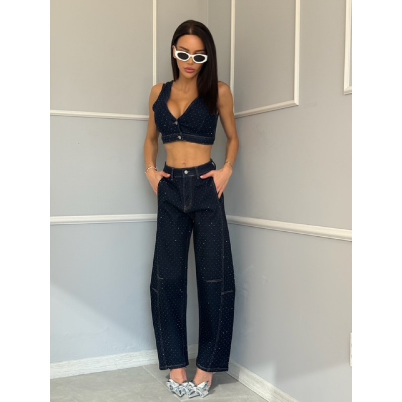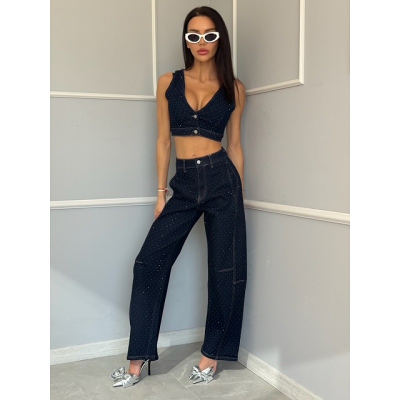 Дамски дънков комплект с камъни Ariyas - подходящ за млади и динамични жени с изразен вкус към съвременната мода.