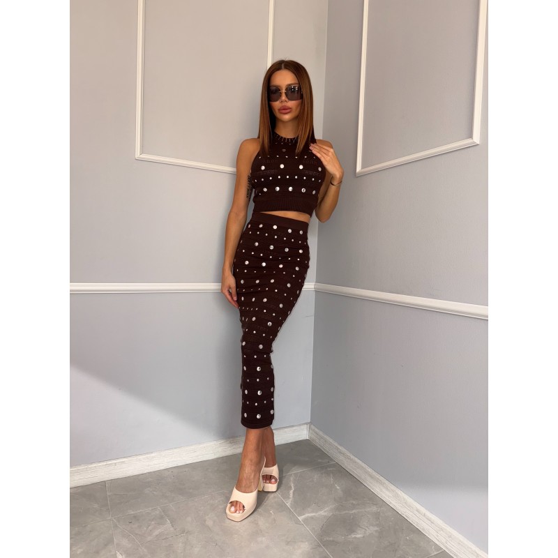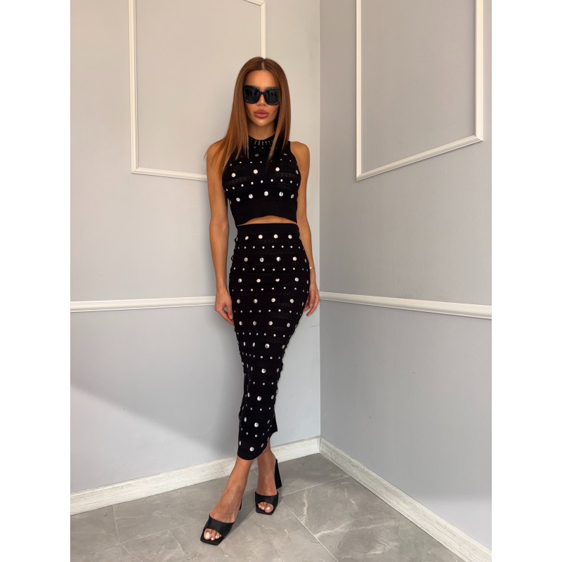 Дамски плетен комплект с камъни Natalis е подходящ за млади и динамични жени с изразен вкус към съвременната мода.